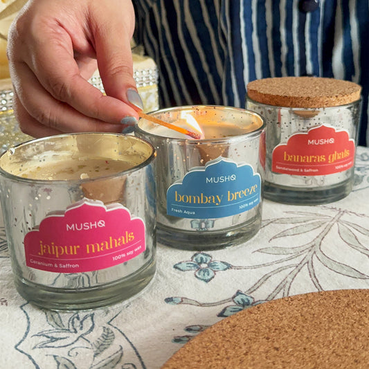 As a woman-led venture, we pour our creativity and dedication into every product, ensuring they reflect the elegance and tastefulness. Whether it's for self-care, enhancing personal spaces, or giving curated gifts, Mushq is a celebration of thoughtful living, where every scent tells a story, and every flicker of light is a touch of poetry.